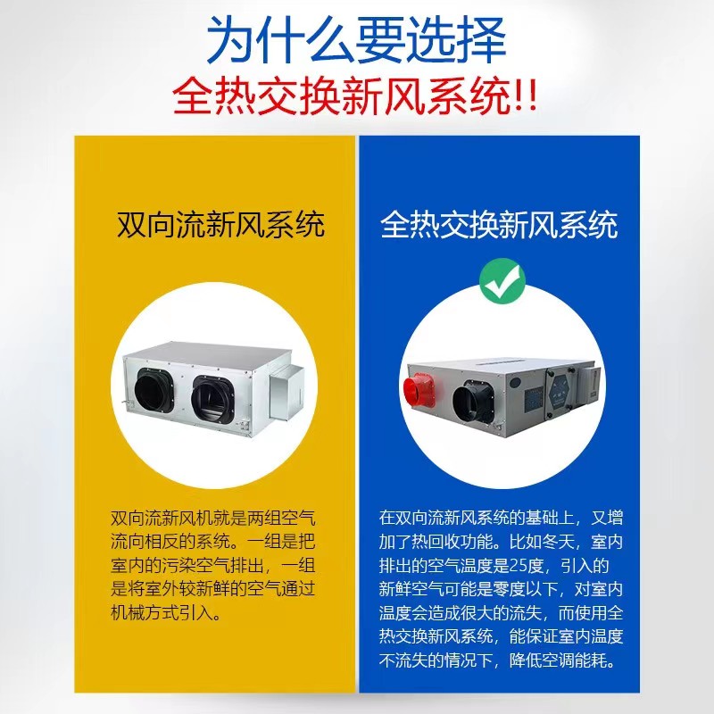 能量回收新風換氣機是一種高效節能型空調通風裝置,分為全熱回收型(全熱交換器)和顯熱回收型(顯熱交換器),其核心功能是利用室內、外空氣的溫差和濕差,通過能量回收機芯良好的換能特性,在雙向置換通風的同時,產生能量交換,使新風有效獲取排風中的焓值(全熱型)或溫度(顯熱型),從而大大節約了新風預處理的能耗,達到節能換氣的目的,其節能效果非常顯著。