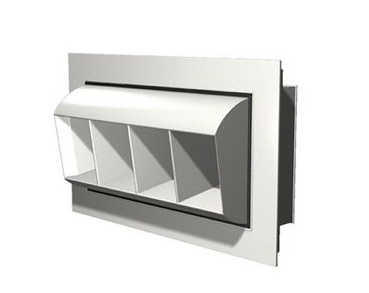 鼓形風口具有送風角度雙向調節的特點,用作空調系統和通風系統的送風出口。風口為矩形外框結構,外框內套有鼓殼,鼓殼內設有聯動流線型活動葉片。鼓殼可以在俯仰方向上沿水平軸在正負300度的角度范圍內調節。連桿葉片可以在正負450度的角度范圍內沿水平方向調節。改變空氣供應的方向。風量可以用風量調節閥調節。