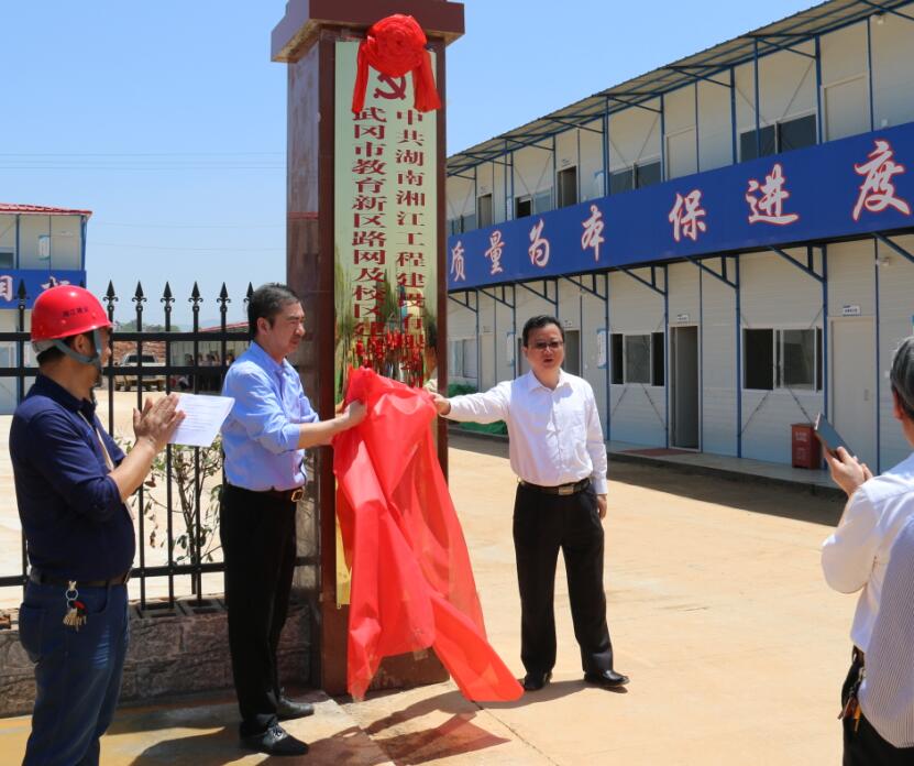 2018年4月18日上午,湘江公司武岡市教新區路網及校區建設工程項目黨支部揭牌儀式在項目部隆重舉行,副局長吳宏斌、局黨組成員、副局長王曉敏、局人事處處長胡世明、局直機關黨委專職副書記劉雄以及局調研組和公司領導應邀出席,項目部全體員工參加儀式。