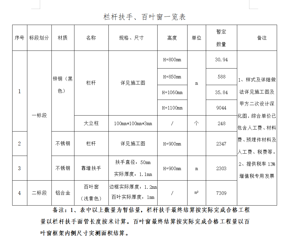 3、招標范圍:校區內房建工程欄桿扶手、百葉窗專業分包施工,詳情見欄桿扶手、百葉窗一覽表