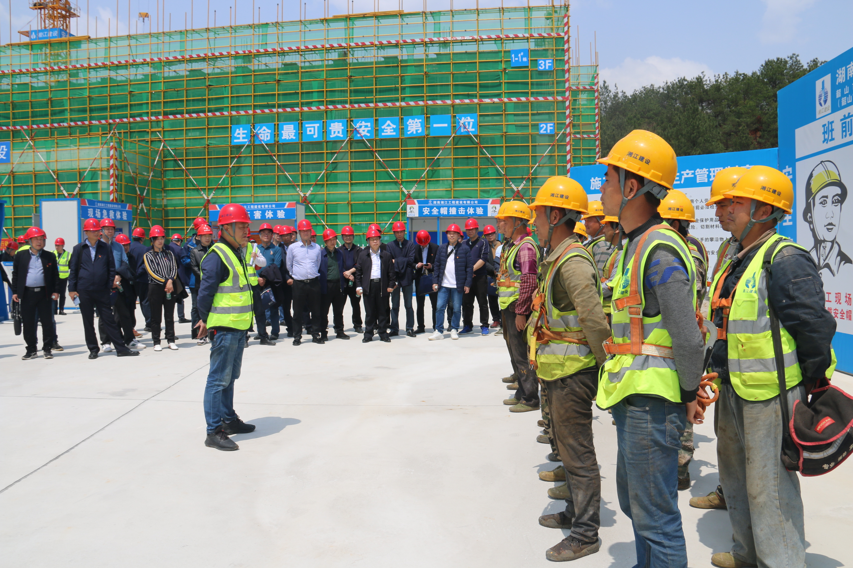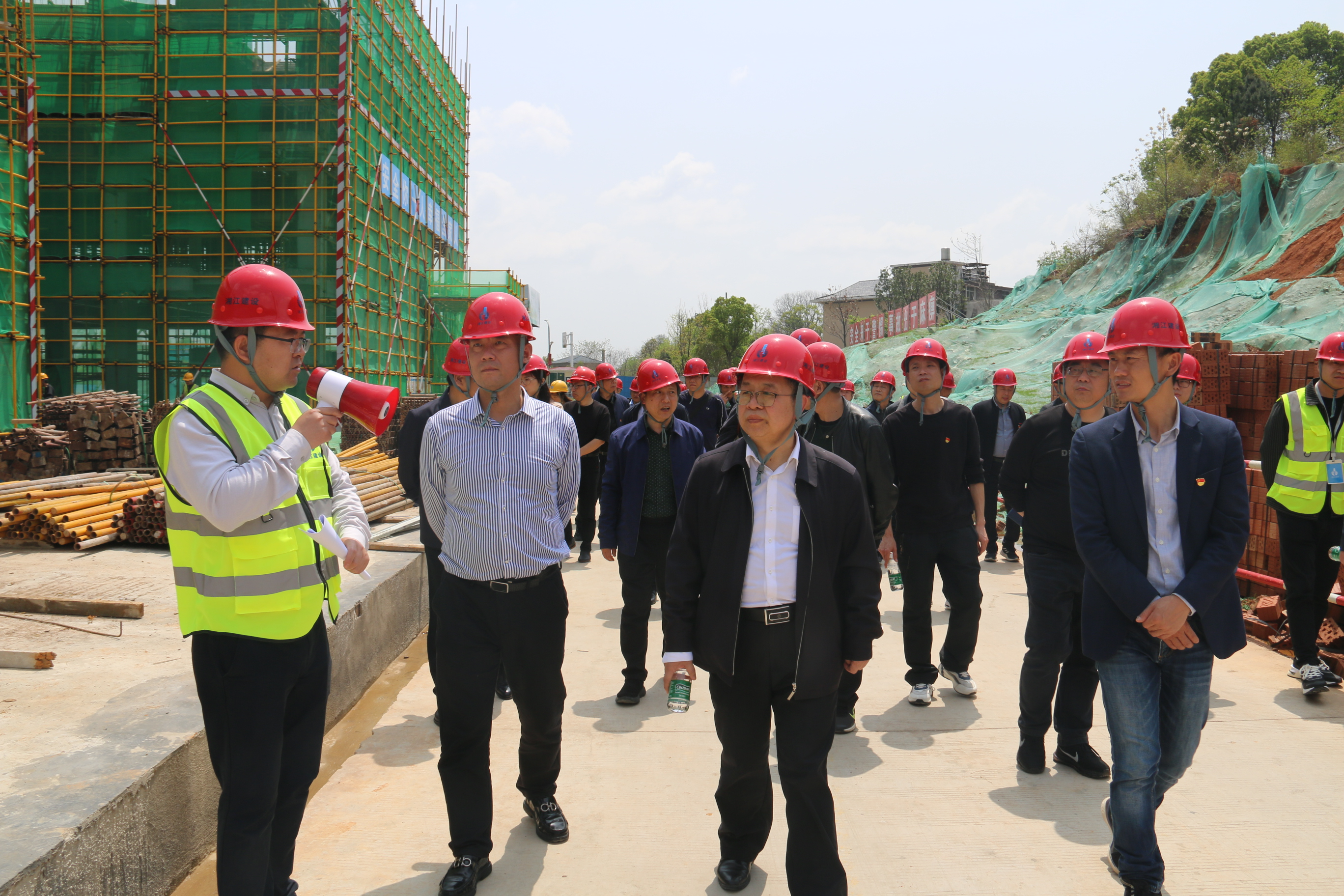 4月7日,湘江公司韶山市產教融合職業教育園項目安全質量文明施工現場觀摩交流會在韶山市項目工地舉辦。院黨委委員、副院長全鐵軍、一級巡視員吳宏斌、院屬各單位分管安全工作的領導、安全科長及院安全生產管理室全體人員、湘江公司領導及項目部負責施工生產及安全質量管理人員60余人參加了此次活動。